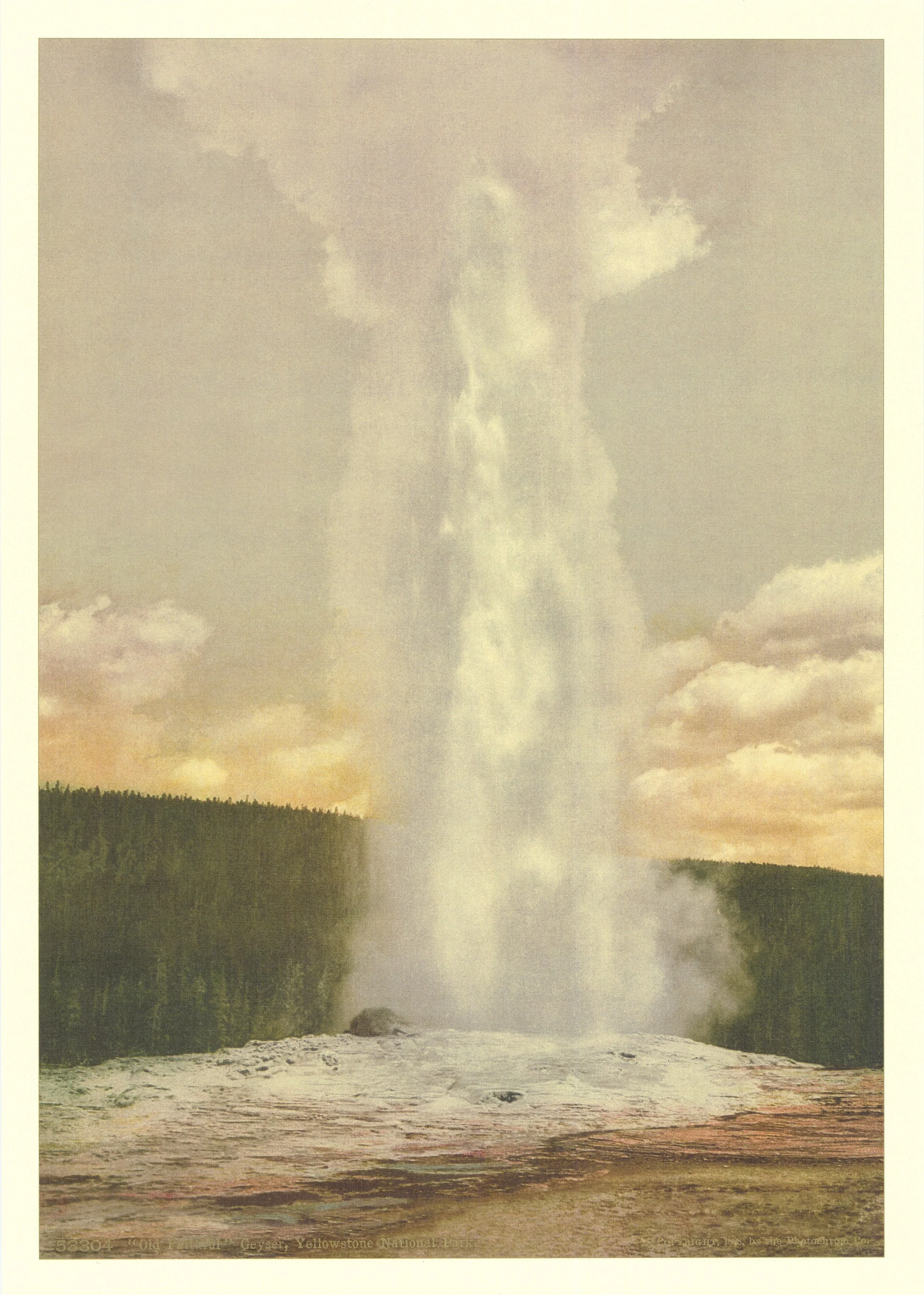 Text at the bottom of the image begins with a serial number and reads: 58304 “Old Faithful” Geyser, Yellowstone National Park. Copyright 1898 by the Photochrom Co.